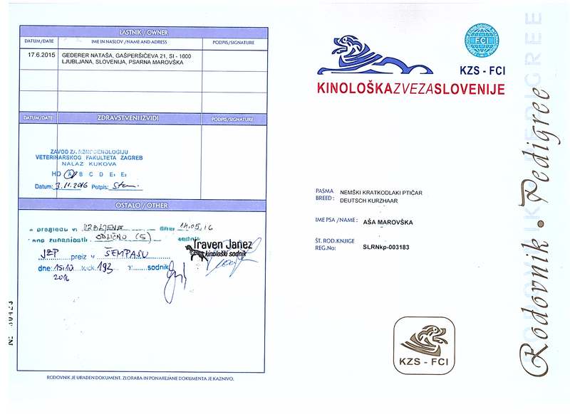 Oče KS Whisky von Göttlesbrunnerhof, öHZB DK 21788, D108,S1a, VGP1, VBR, WV-VGP1a, BTR, IKP-136-I, JE, Kleem. Prf., HD-B1, OCD/ED-0