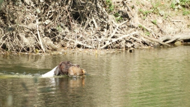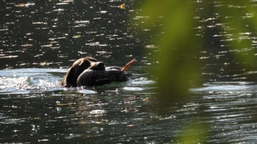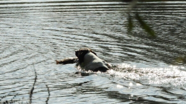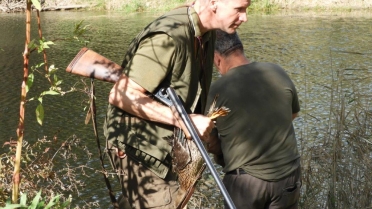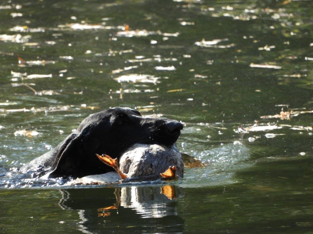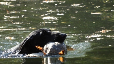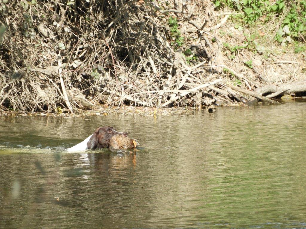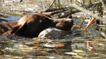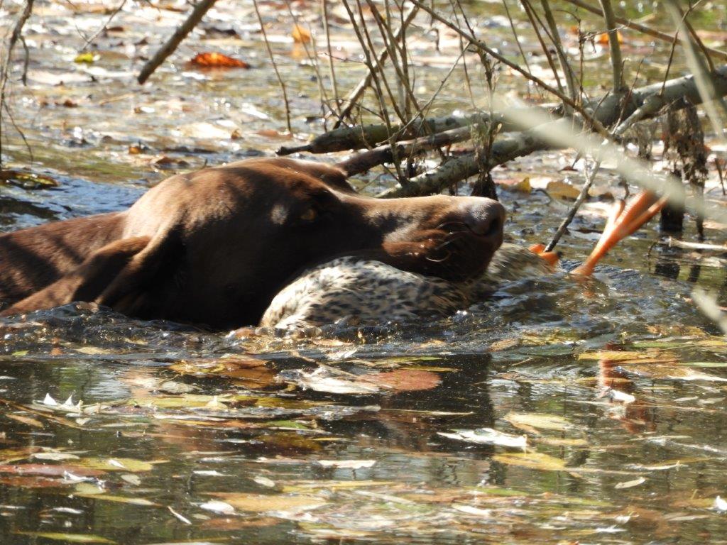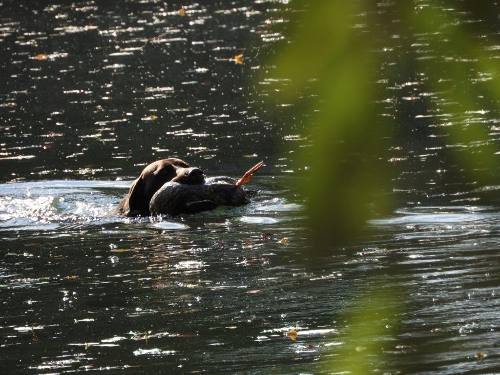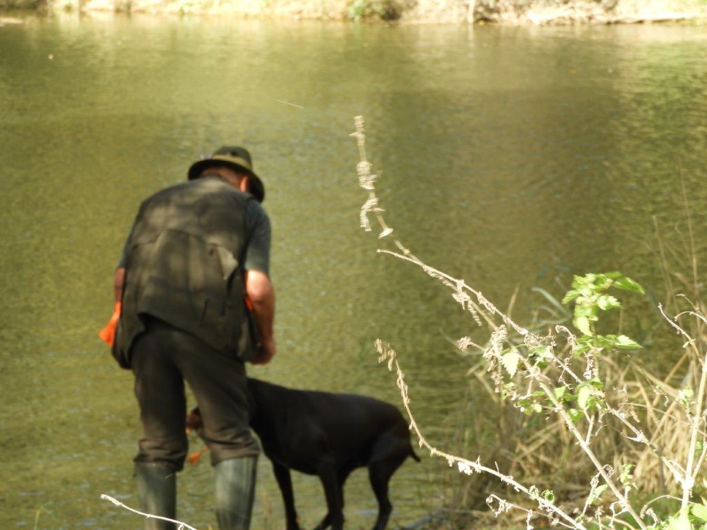 Prva disciplina vodnega dela na »Solmsu« je, prinašanje mrtve race ob oddanem strelu. Vsi psi razen Rose Hudobreg, Igorja Ogorelca so preizkus opravili. Rosa v vodo ni hotela kljub večkratnemu spodbujanju in metanju kamenja. Ob vedenju psice je bil začuden tudi njen vodnik. Z doslednim in nepretiranim delom ob vsakokratni uporabi plena pa bo vodnik odpravil tudi to tokratno pomanjkljivost, ki je bila razlog, da smo v skladu z določili pravilnika morali psičko izločiti od nadaljnjega preizkušanja. Pri sledenju race sta bila najboljša, z vsemi možnimi točkami Ash Waterfield vodnika Ivana Nemca in Lahova Resa Hudobreg. Resi je raca iz prve mlake odšla v drugo mlako kar nam je psička najavila z laježem in gonjo race, dobrih 200 m od mesta izpusta. Po nekaj minutah je lajež utihnil in psica se je pojavila z živo raco v gobcu, jo korektno prinesla in oddala vodniku. Sodniška skupina je bila pri delu psice enotna in dodelili smo ji 4-o (odlično). Kot sem že omenil je delo v vodi, brez napak opravil tudi Nemčev Ash Watwrfield. Lani na jesenski preizkušnji je po strelu v smeri race pes iz vode pobegnil. Vodnik je takrat povedal, da je pes pri treningu padel v globok tolmun iz katerega so ga morali reševati. Tako »slabo izkušnjo« je treba začeti popravljati in prikrivati takoj – že naslednji dan po dogodku. Takoj moramo pričeti s prijetnimi igranji prinašanja v plitvi vodi, kamor do globine gležnjev gresta vodnik in pes. Za celotno učenje prinašanja na suhem in iz vode pa velja zlato pravilo:« s treningom prenehaj takoj, ko ti pes prinese prinosilo korektno!« Tako uspešno izvedeni vaji mora obvezno slediti izdatna pohvala in najboljša možna nagrada. Vaneku – I. Nemcu je to uspelo odlično zato mu gredo vse čestitke. Tudi ostali psi so bili pri disciplinah v vodi uspešni, žal pa so tudi tu imeli nekateri težave pri prinašanju in oddaji race. Psi so še mladi kar pomeni, da jih bodo vodniki z strajnim in doslednim delom lahko utrdili pri disciplinah prinašanja plena. Z odložitvijo psov in tako, da so vodniki morali oditi v kritje smo tudi na ta način preverili njihovo trdnost značaja. V lovskem domu sta Lidija in Vilko izpisala vse zahtevane formularje. Sledila je razglasitev rezultatov in zahvala vsem, ki so pripomogli, da smo preizkušnjo uspešno »pospravili pod streho«.