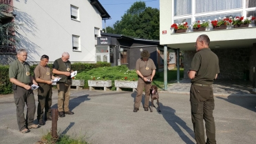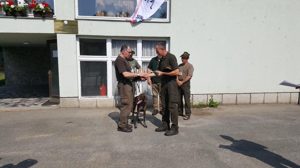 Sled je bila dokaj zahtevna in psička Ajka z vodnikom je nalogo rešila z odliko, tako je postala izprašana za iskalca velike divjadi. Želimo si, da bi v bodoče bilo več vodnikov, ki bi bili tako uspešni. Zaključek na terenu in vrnitev v upravno zgradbo LPN Fazan Beltinci na razglasitev rezultatov. Vodniku Srečku in psički Ajki je bil podeljen pokal in diploma za opravljeno delo. Sledi zaključni govor vodje preizkušnje, predstavljeno delo s strani sodnikov in zaključek delegata KZS Jožeta Vrečka, ki je preizkušnjo slišano pohvalil, ampak žal premalo vodnikov in tako je sledil zadnji pogon.